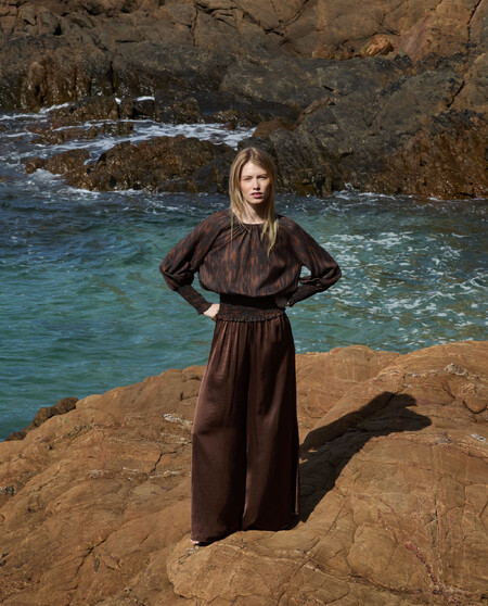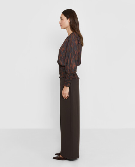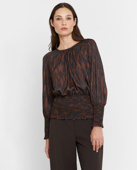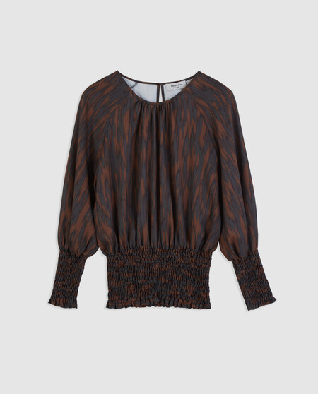 Blusa estampada. Mangas largas con detalle de frunce.