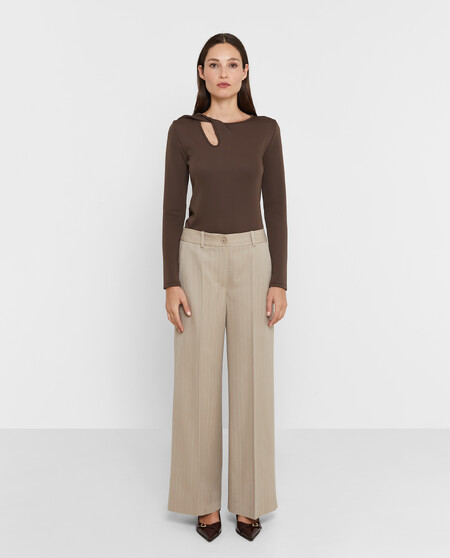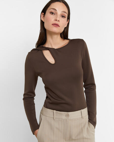 Camiseta elástica con detalle en parte delantera. Manga larga.