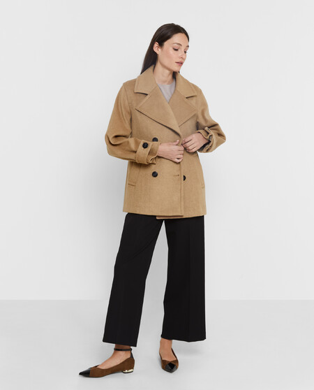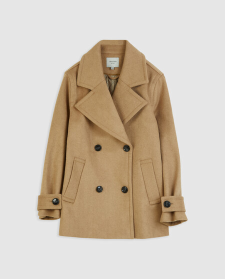 Abrigo con cierre de botones. Cuello solapa. Detalle de botón en bajo de mangas. Bolsillos delanteros.