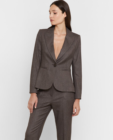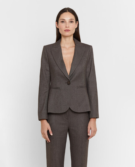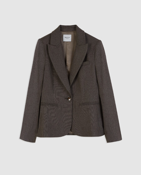 Chaqueta americana. Cuello solapa. Cierre botón. 3 bolsillos delanteros.