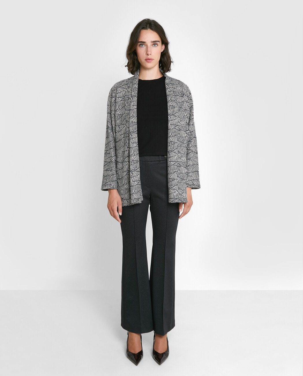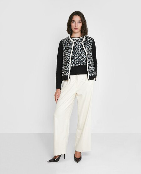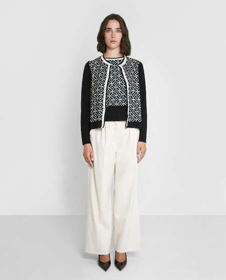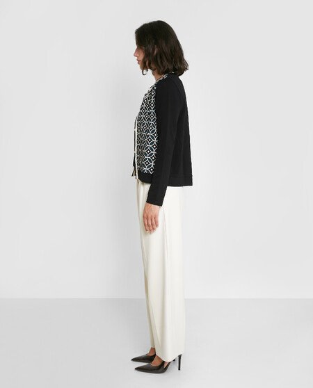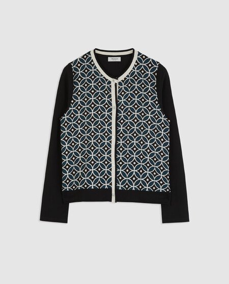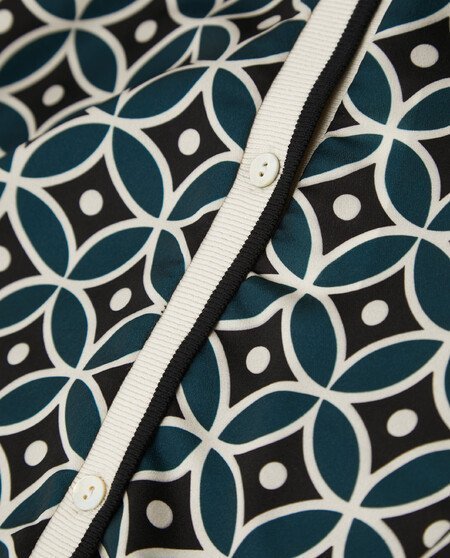 Chaqueta corta de manga larga con estampado en la parte delantera. Cierre con botones.