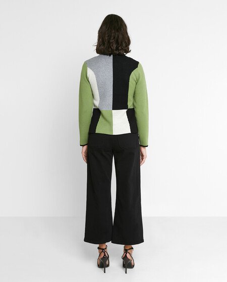Jersey bloque de colores. Cuello redondo. Manga larga.