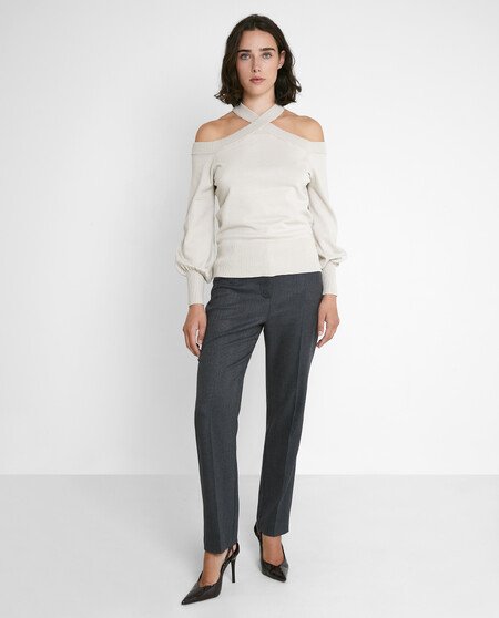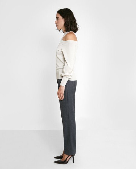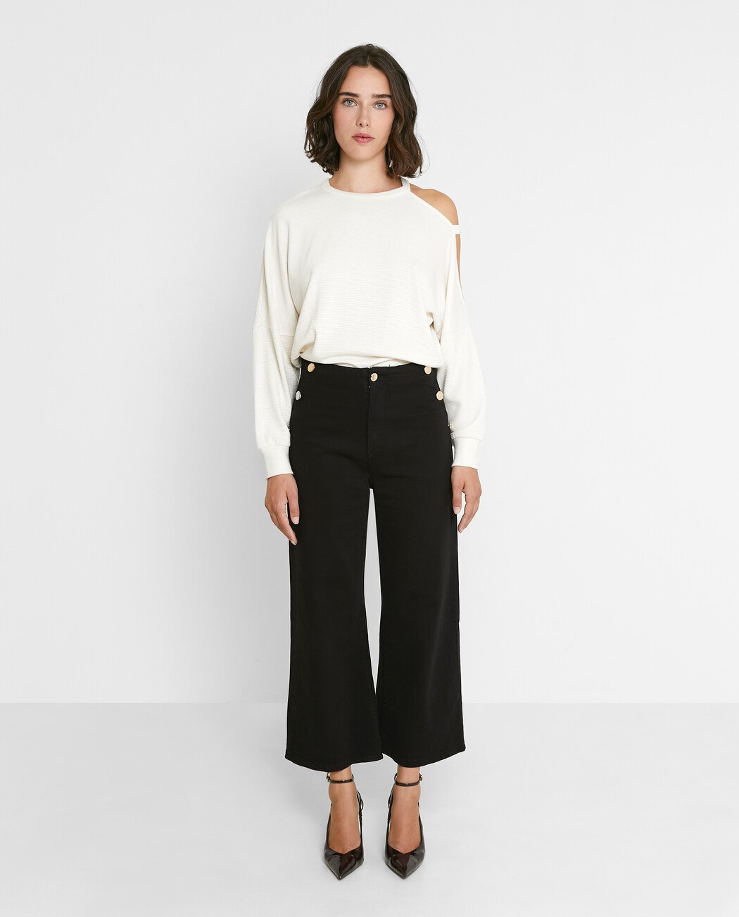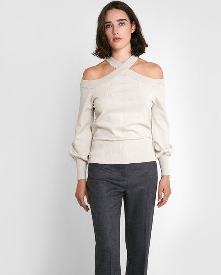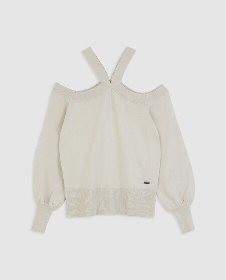 Jersey manga larga. Cuello cruzado. Hombros descubiertos.