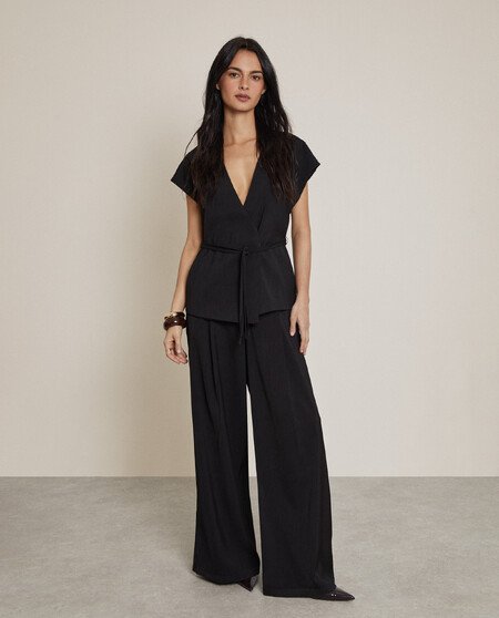 Pantalón pierna ancha. Bolsillos laterales. Cierre oculto. Completa el look con el chaleco JT04AD10A00.