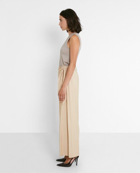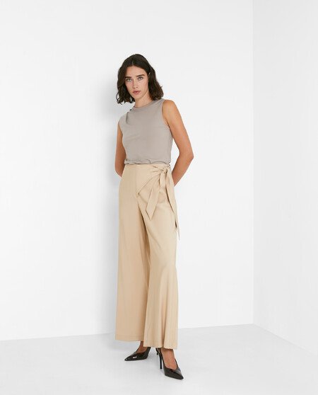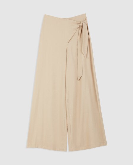 Pantalón palazzo cruzado acabado en lazo y cremallera invisible lateral