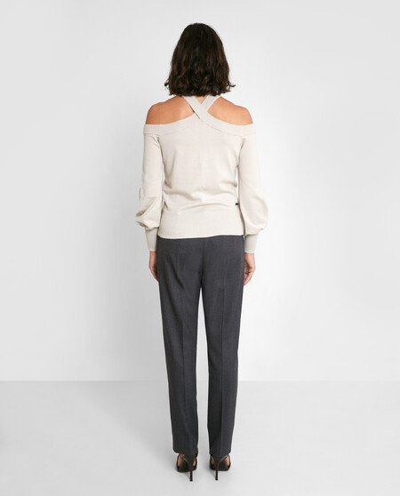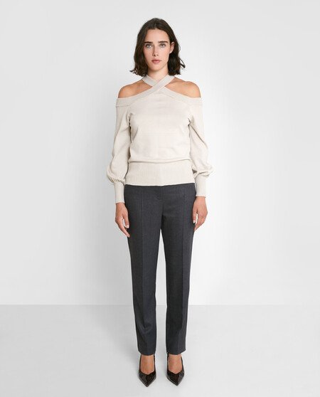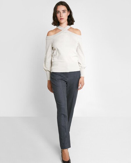 Pantalón de traje de espigas gris. Bolsillos delanteros.