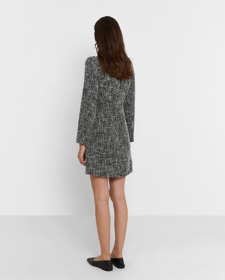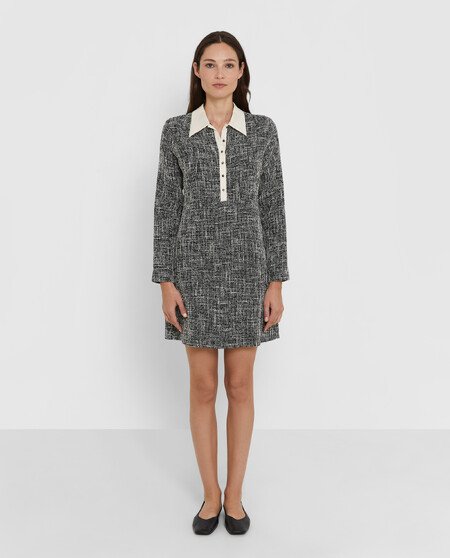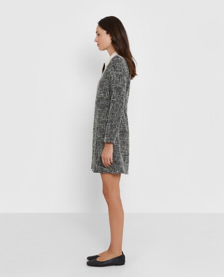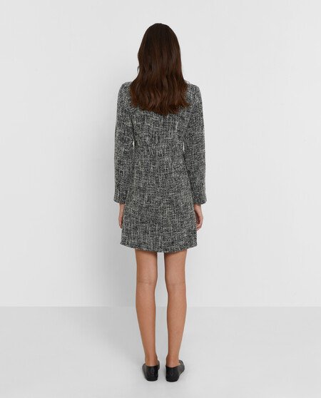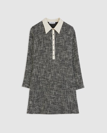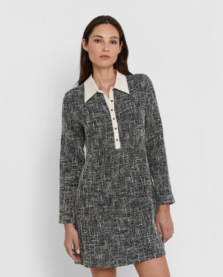 Vestido corto estilo tweed de manga larga, cuello camisa cerrado con botones