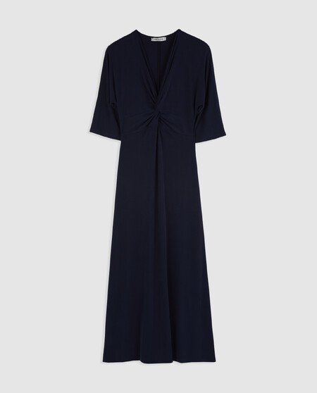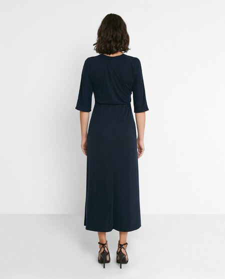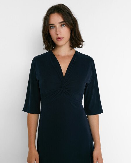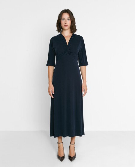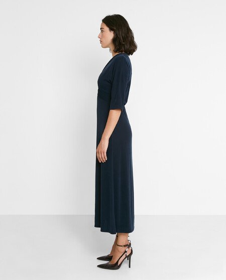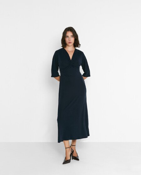 Vestido midi con mangas al codo y escote pico.