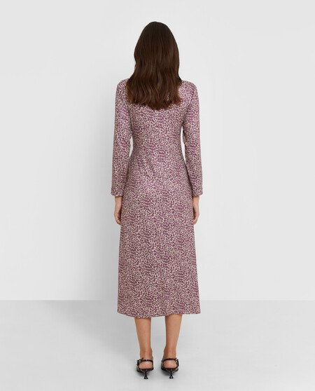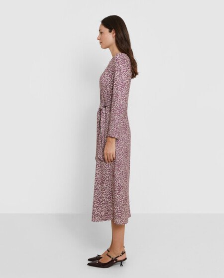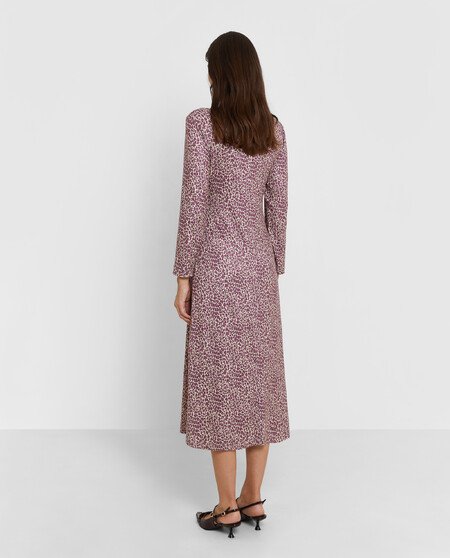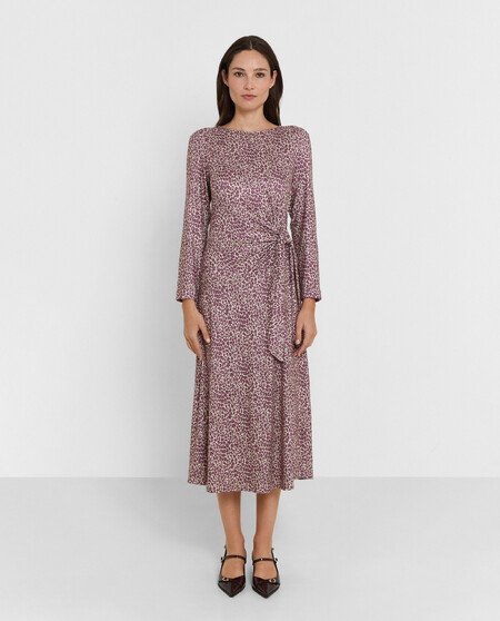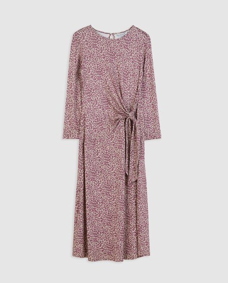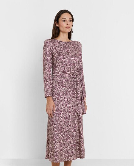 Vestido largo animal print de manga larga, cuello redondo y nudo en lateral